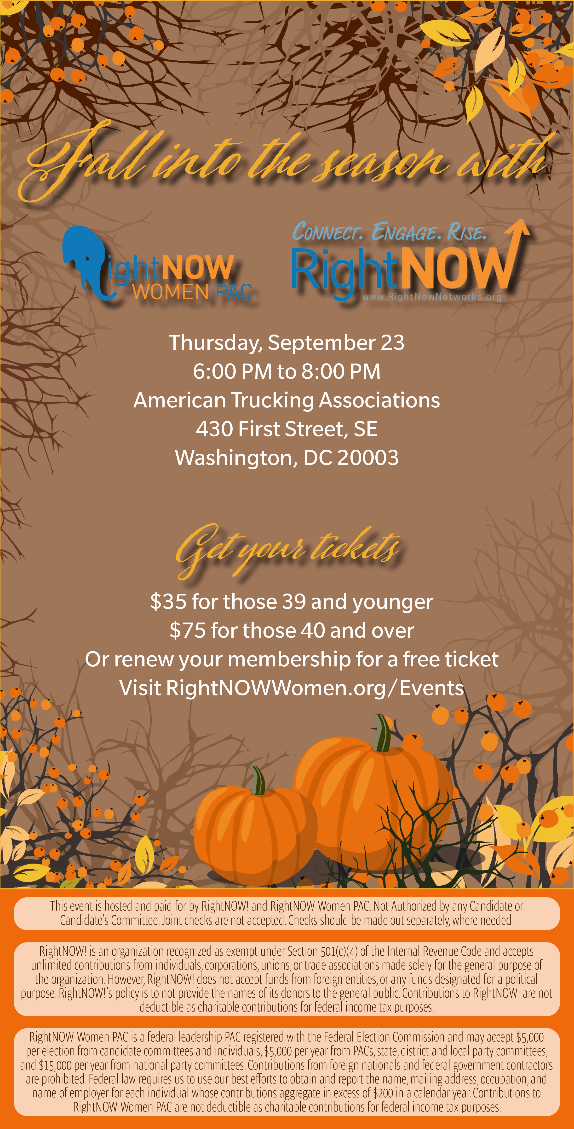 This event is hosted and paid for by RightNOW! and RightNOW Women PAC. Not Authorized by any Candidate or Candidate’s Committee. Joint checks are not accepted. Checks should be made out separately, where needed.